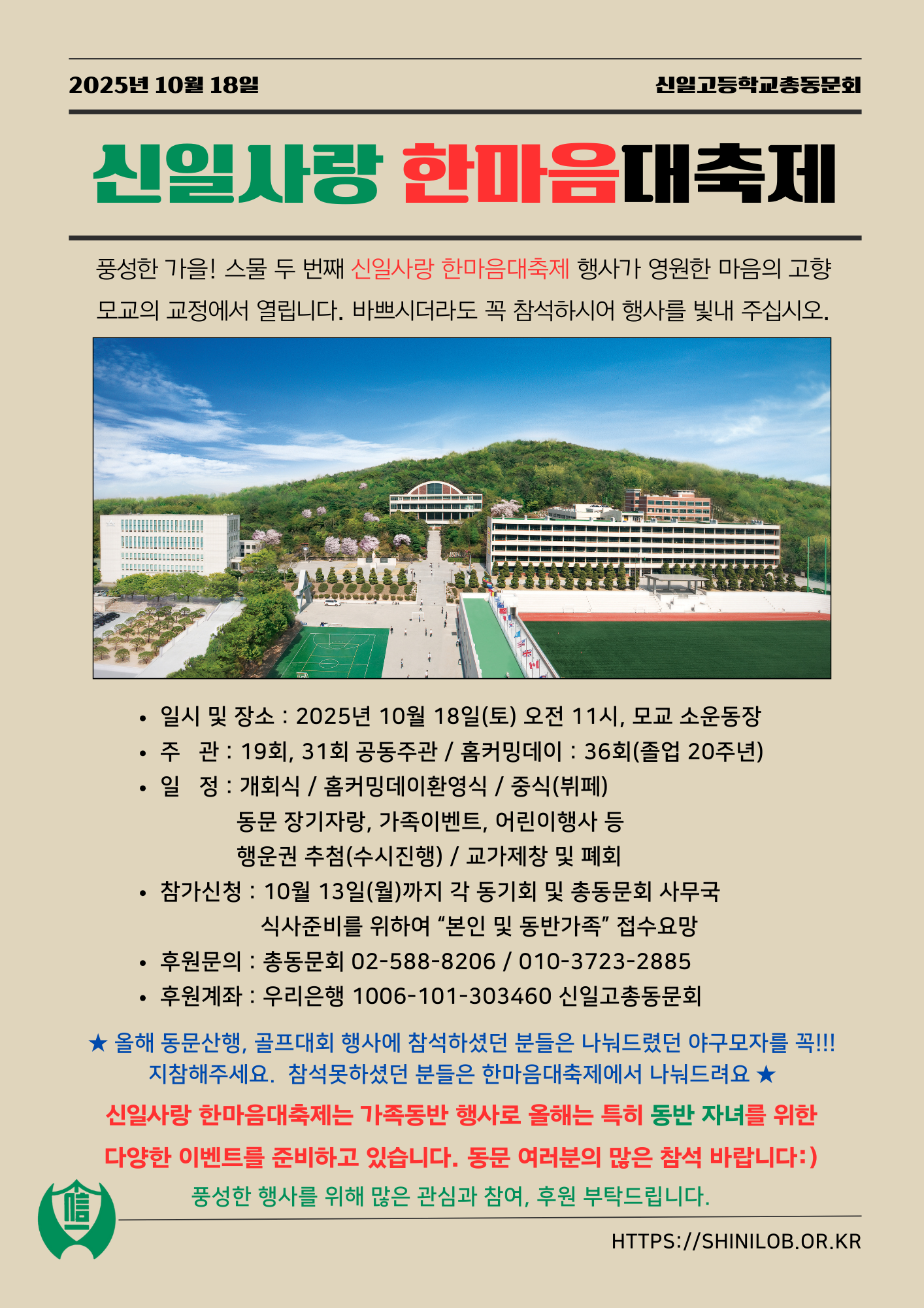 #.후 원 : 우리은행 1006-101-303460 신일고총동문회